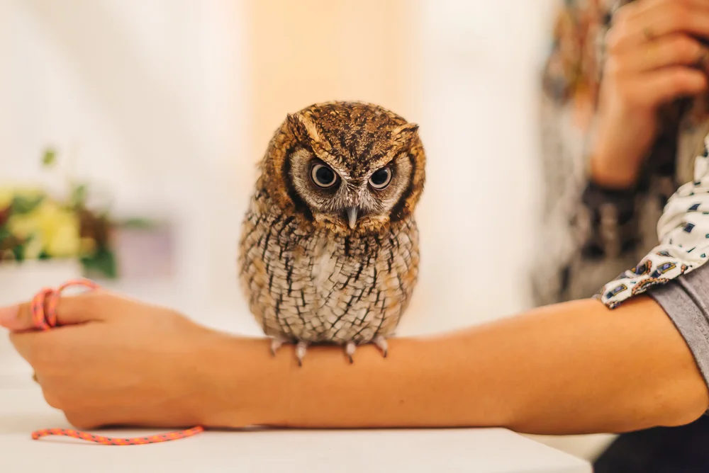 If you're not into hedgehogs, there's also an Owl Cafe in Akihabara. Learn how to hold and pet the owls gently and quietly. Just be cautious when an owl makes it's way up to your head. They tend to use the bathroom whenever they please...