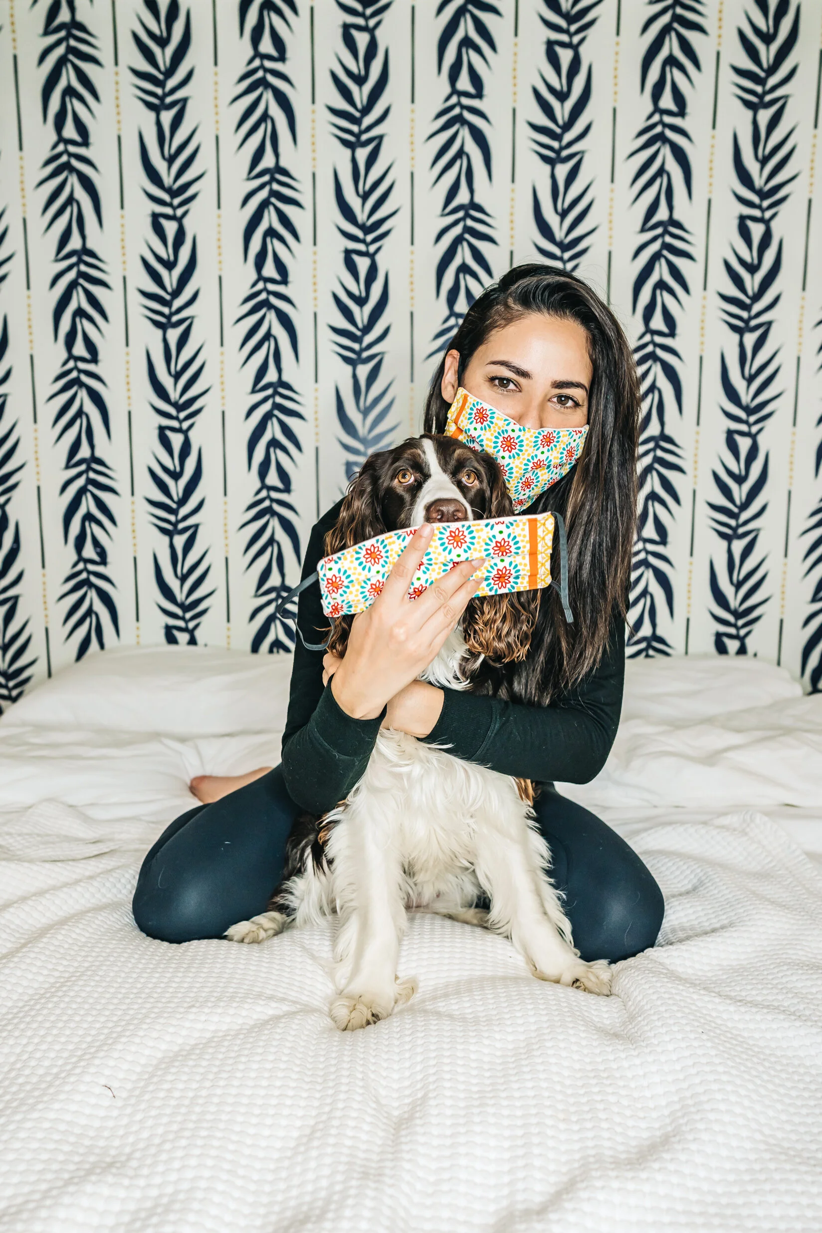 I (Candy) decided to create an accent wall in my bedroom to make it a little more special. I added a Vintage Palm Peel and Stick Wallpaper by Drew Barrymore Flower Home which was super easy to install. All I needed was a pair of scissors and some moral support from my pup, Zooey. I simply cut the wallpaper, removed the backing, and stuck it to the wall. If I made any mistakes, it was easy to peel and reapply. The best part is that I won’t have to worry about leaving any sticky residue or damage behind if I ever decide to remove it. This is great for those of us who live in rental units.