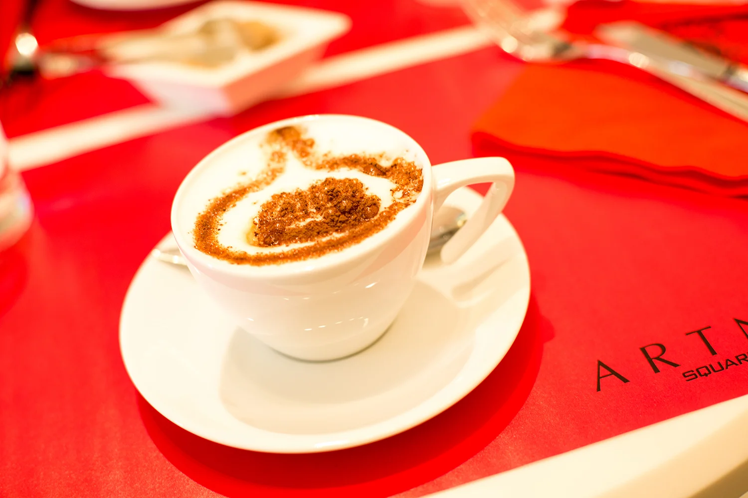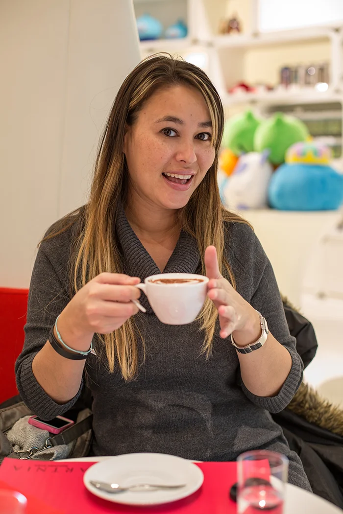 CRYSTAL ORDERED A LATTE THAT HAD SLIME "THE CHARACTER" ON IT.