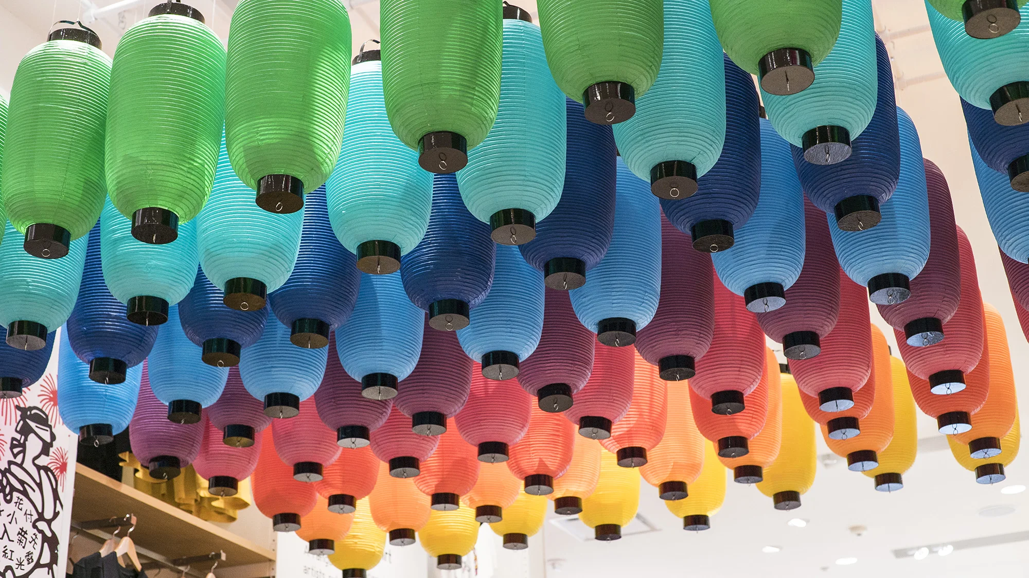 COOL DISPLAY OF PAPER LANTERNS INSIDE UNIQLO