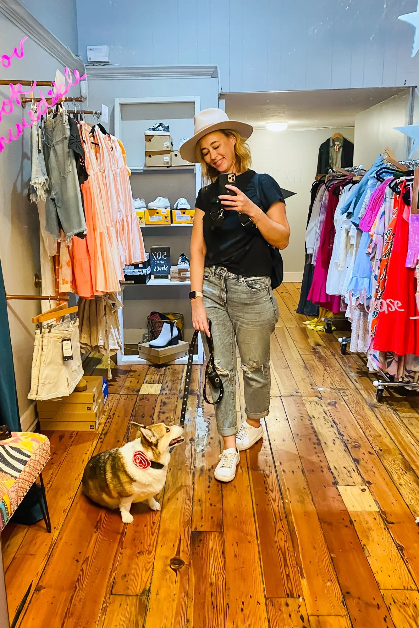 We walked to Dog Door, about a 10-minute walk, where we could get more information on dog-friendly things to do in Asheville. Dog Door is where they consider the place to be a welcome center for dogs. It’s also a dog behavioral center and a pet store.