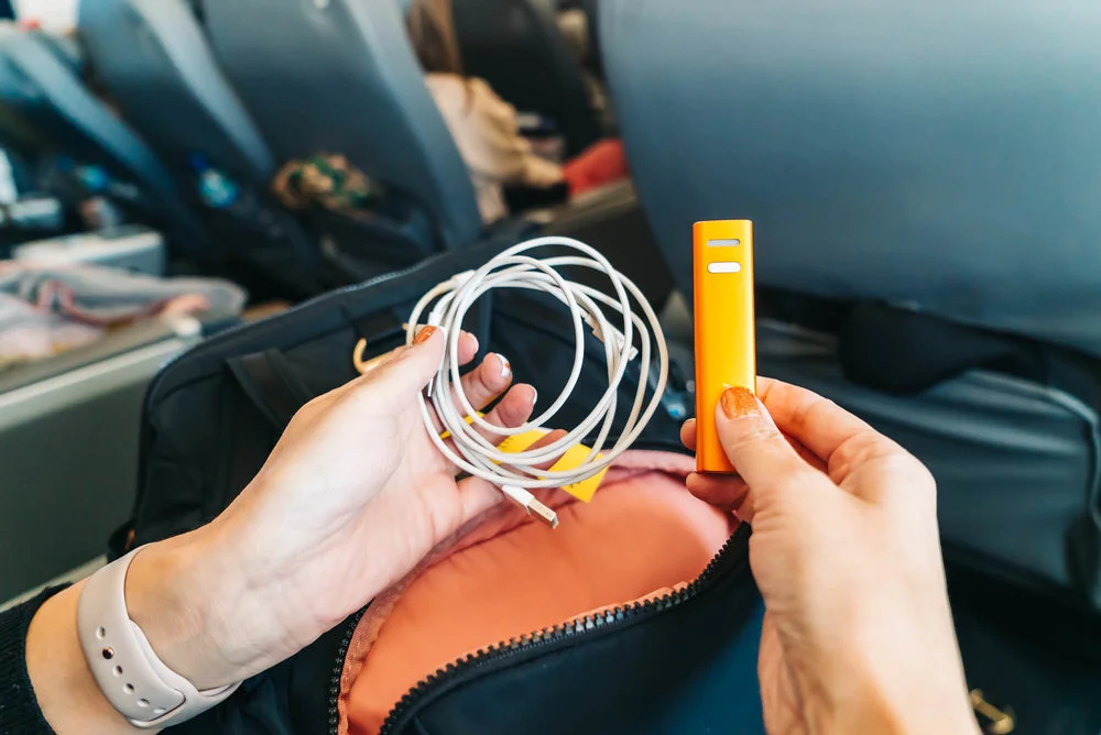 If you have an Away suitcase, you can remove the portable battery from the suitcase and toss it into your backpack or purse.