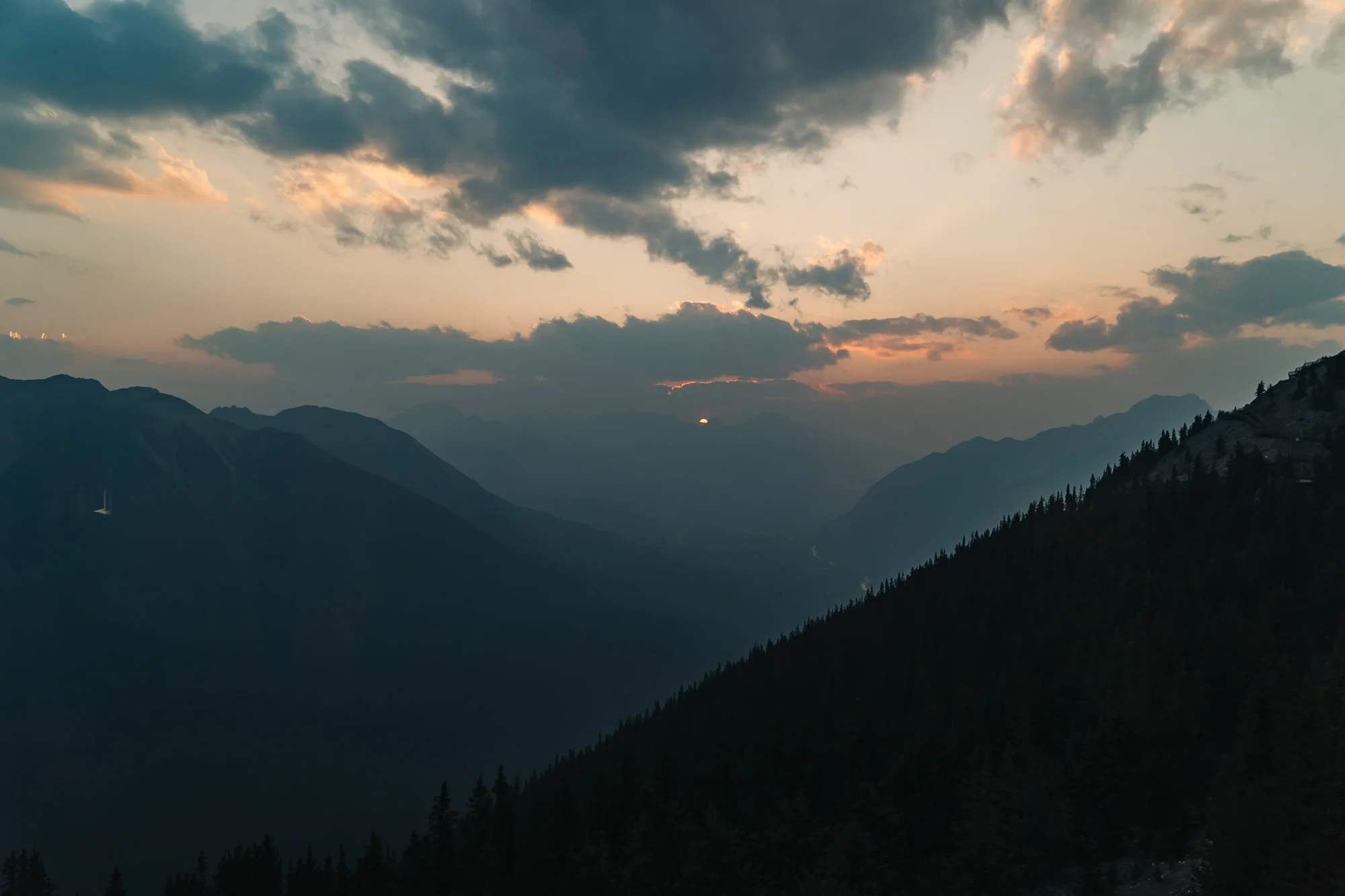 We had a great time exploring and dining at the summit of Sulphur mountain. It was pretty cloudy the night we went (mountain weather is so unpredictable!), so we assumed we wouldn’t be able to see the sunset we had hoped for, but as we were making our way back to the gondola, we noticed the sun setting in the distance behind the mountains. It was such a beautiful moment and the perfect ending to our night.