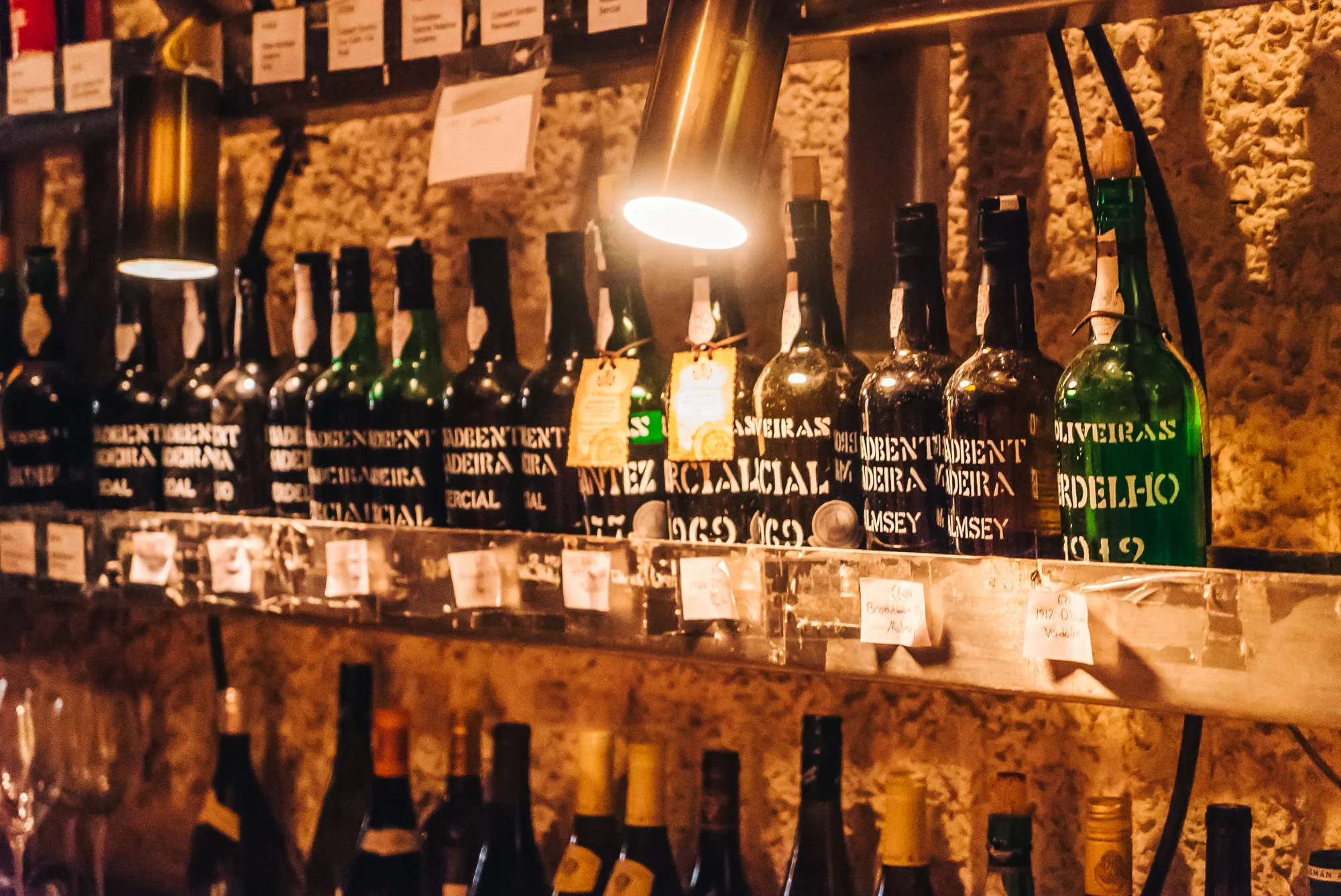 Some of the oldest wines at Bern's wine cellar. Those vintage bottles!