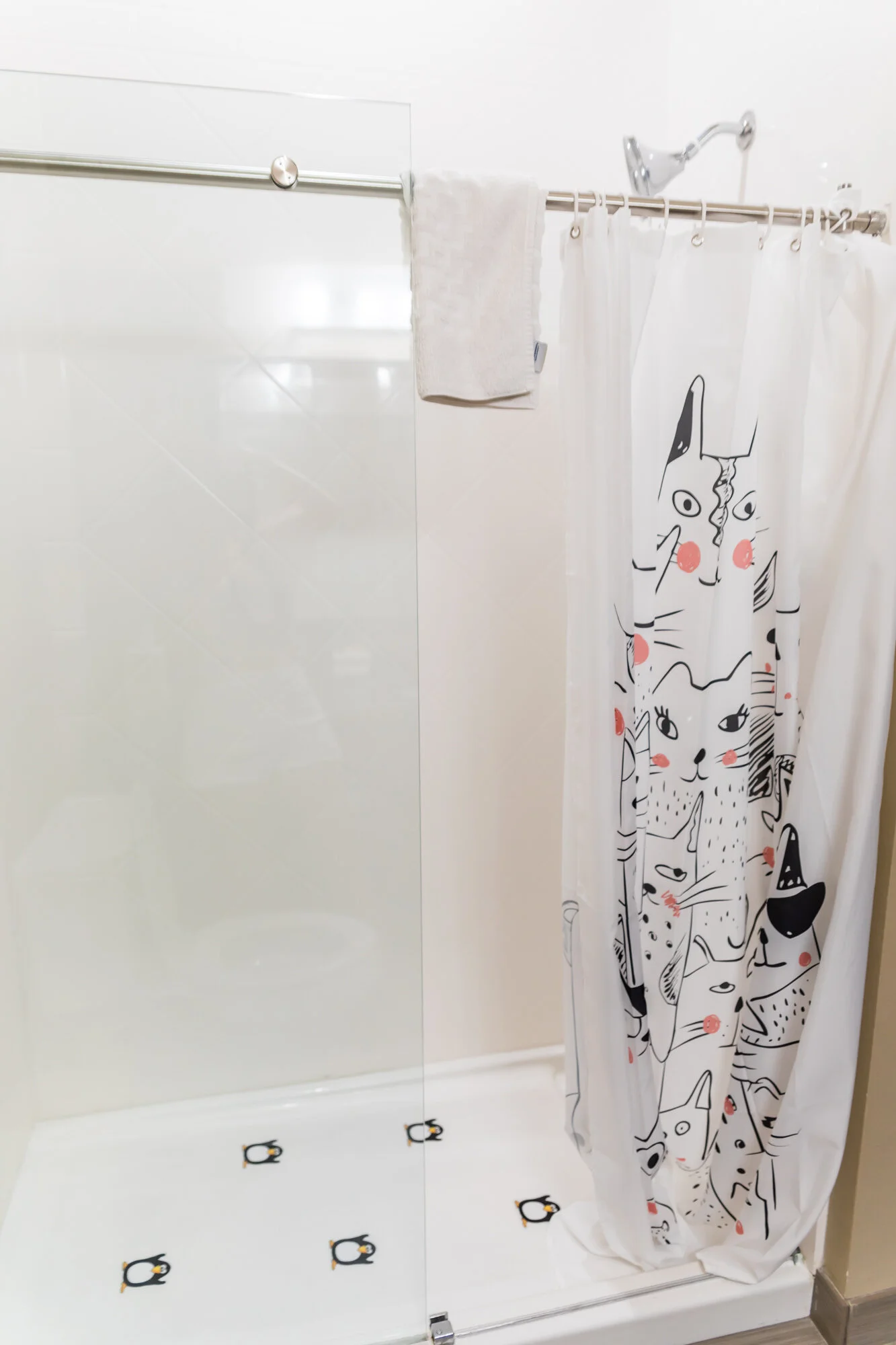 I loved that they decorated the bathroom specifically for pet owners. There was a funny Tupac portrait of a dog and cute cat shower curtains.