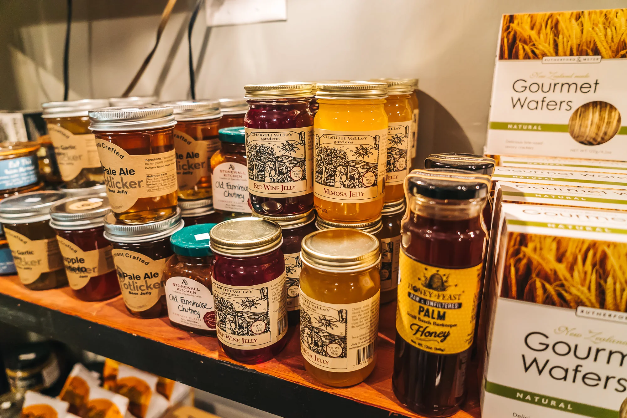 Lots of yummy jams and jellys for purchase up front at Cheese Please