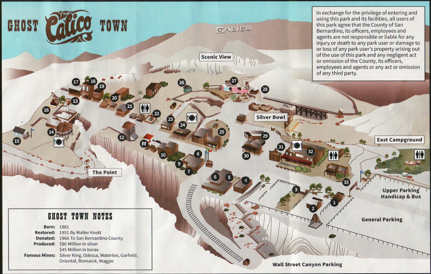 Eventually, the price of silver dropped from $1.31 an ounce to $0.63 and thus Calico became a ghost town. Calico is one of the few remaining original mining towns in the western US thanks to Walter Knott. If that name sounds familiar to you, it’s the same guy who founded Knott’s Berry Farm. He ended up donating Calico to San Bernardino County in 1966.