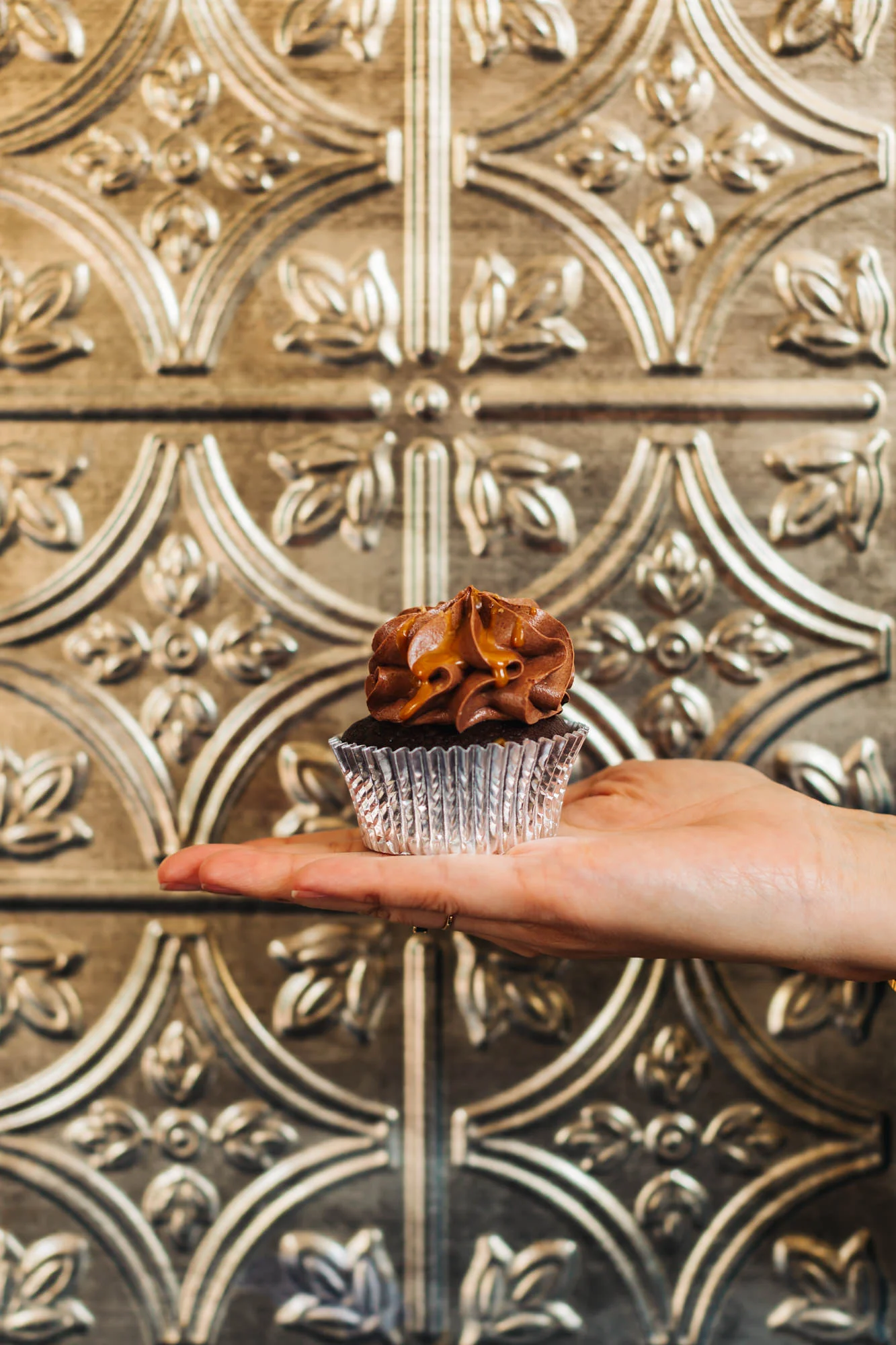 Chocolate Dulce de Leche Habanero filled with a dulce de leche center topped with chocolate buttercream drizzled with dulce de leche and sprinkled with a habanero sea salt