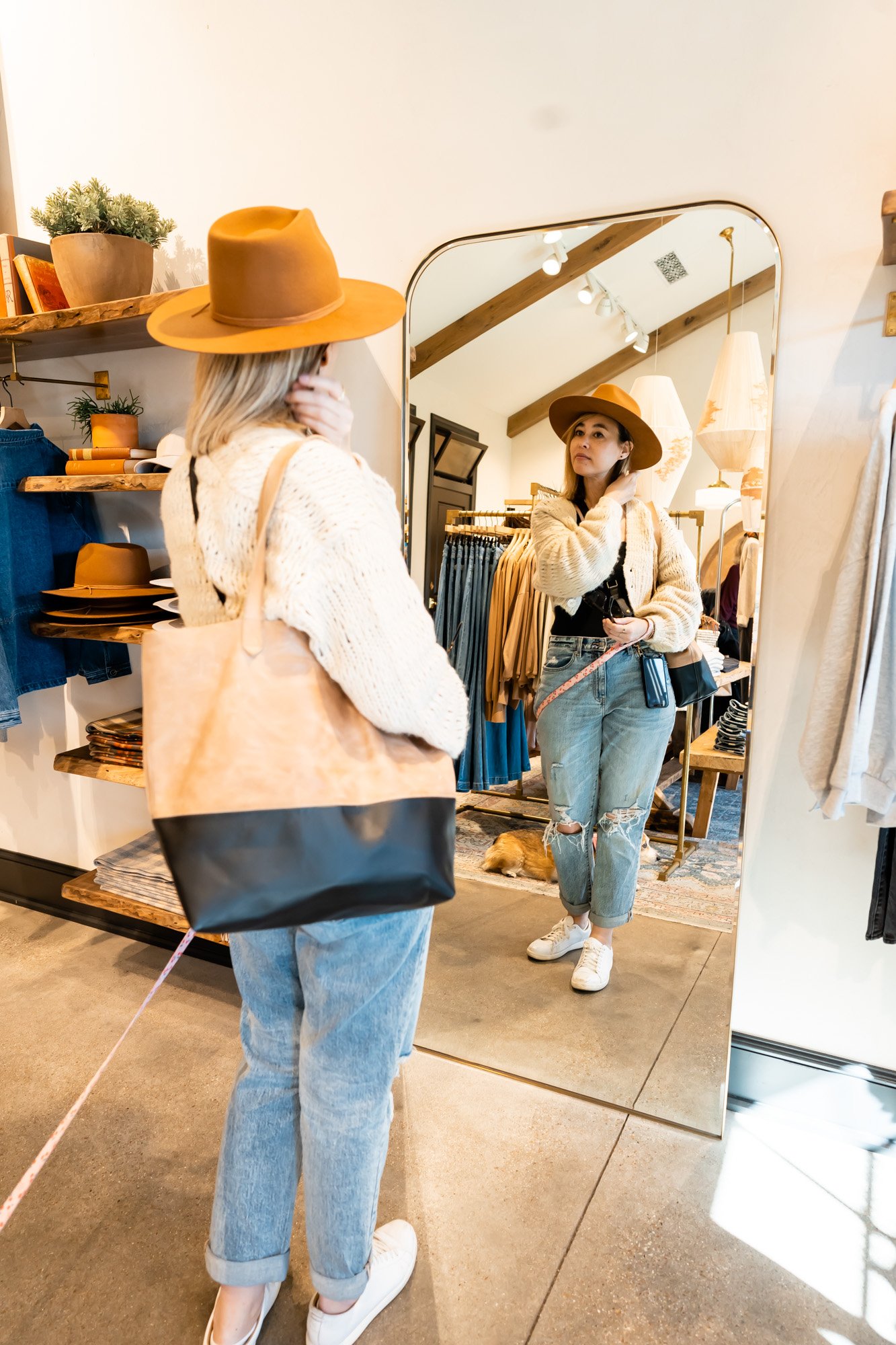 This shop has a great selection of bags, jewelry, and other timeless accessories. We both are obsessed with dainty jewelry pieces and tried on quite a bit of rings. We both ended up purchasing an adorable bar ring and lucky for us, it was on sale.