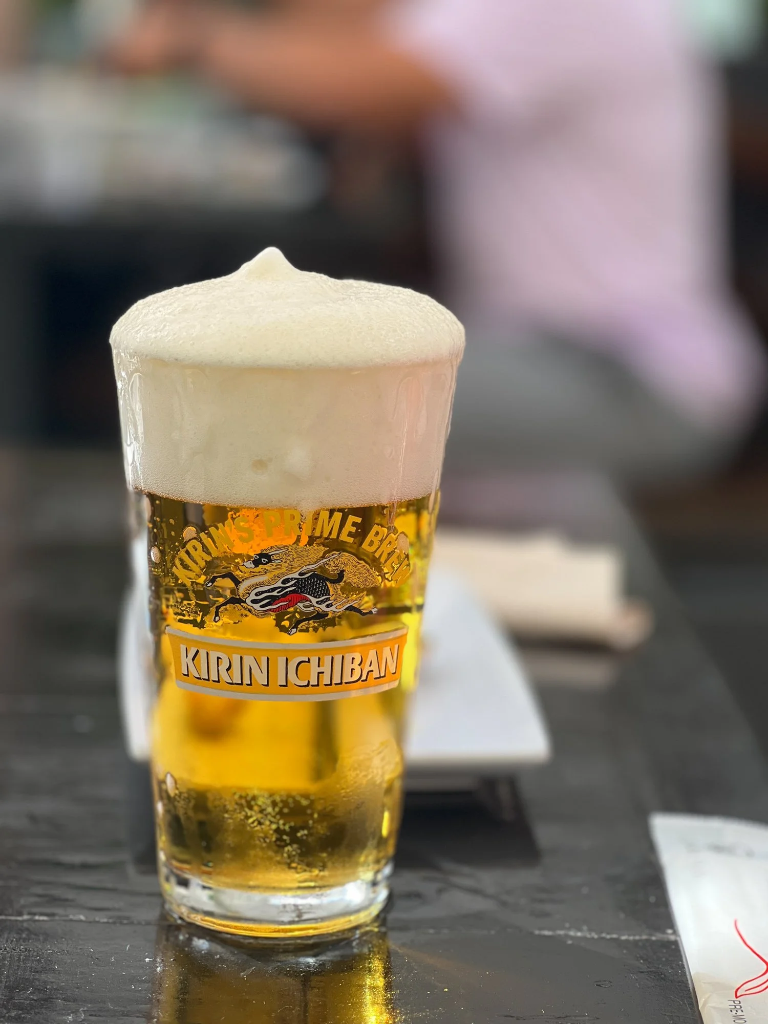 The atmosphere was both casual and inviting, with a lovely choice between sitting indoors or enjoying the outdoor area. We particularly enjoyed the tropical outdoor space and chose to sit outside both times we visited. During their happy hour, we ordered a delectable selection of sushi rolls, savory ramen, and a refreshing frozen draft beer.