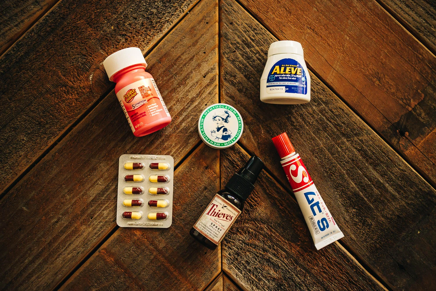 Luckily, we don’t have to take any prescribed medications, but we do always keep in hand Advil, Imodium, and Dramamine.