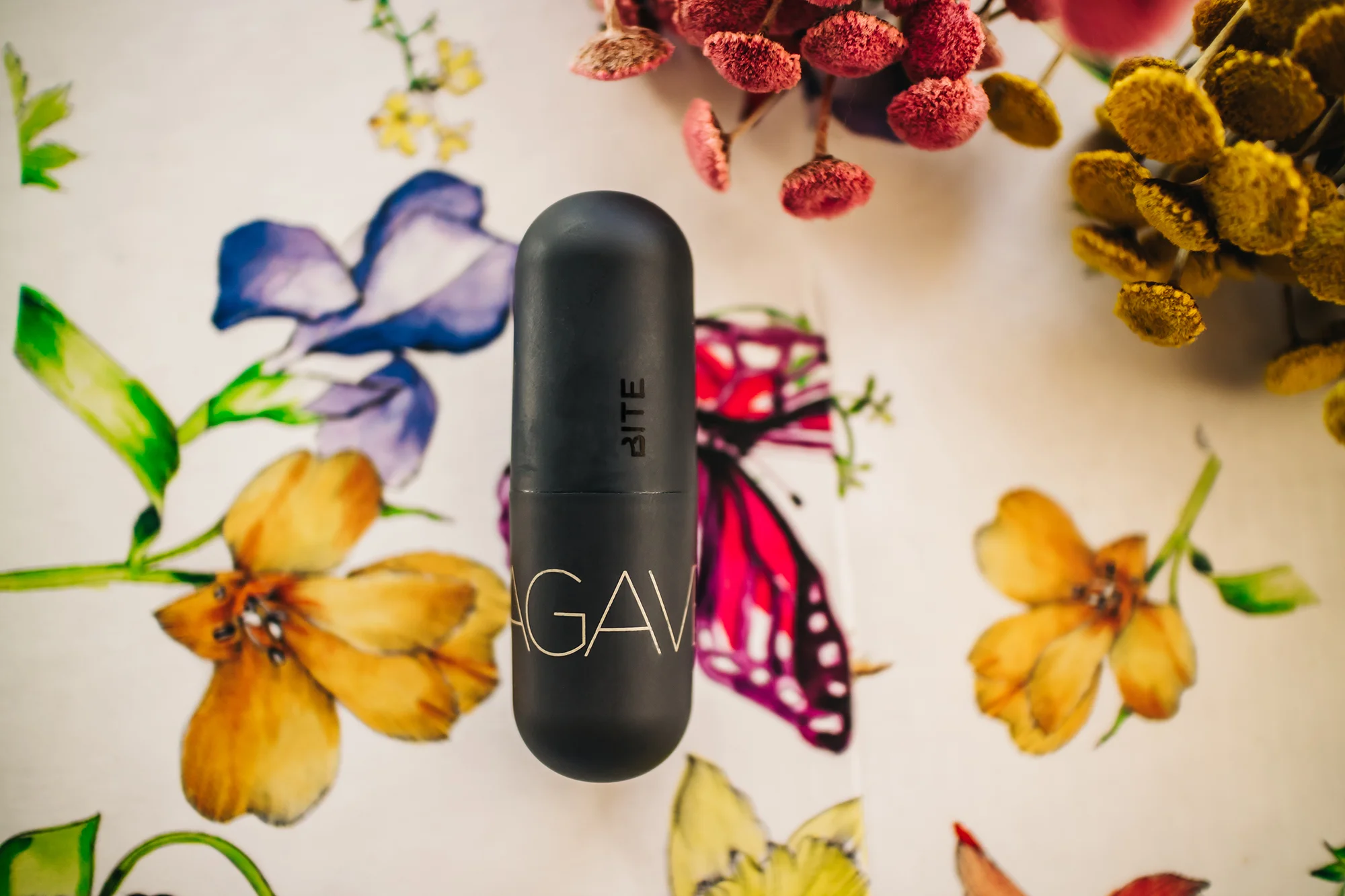 The cabin air really takes a toll on our lips, so having lip balm is a must. Any lip balm will do, but our current favorite is Bite Beauty’s Agave Lip Balm.