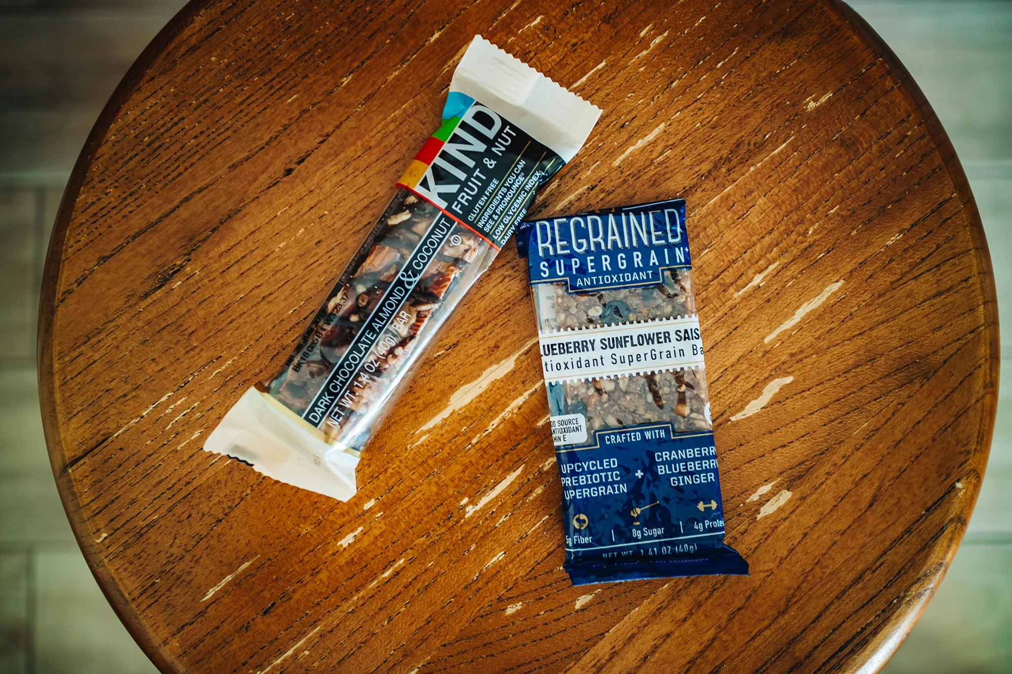 We always pack protein bars or a bag of trail mix just in case we get hungry. One time, Candy got unlucky and during the inflight meal, they ran out of chicken (yes, this can happen) and only had fish available. Candy enjoys seafood, but not airplane seafood so she ended up eating the snacks she brought instead.
