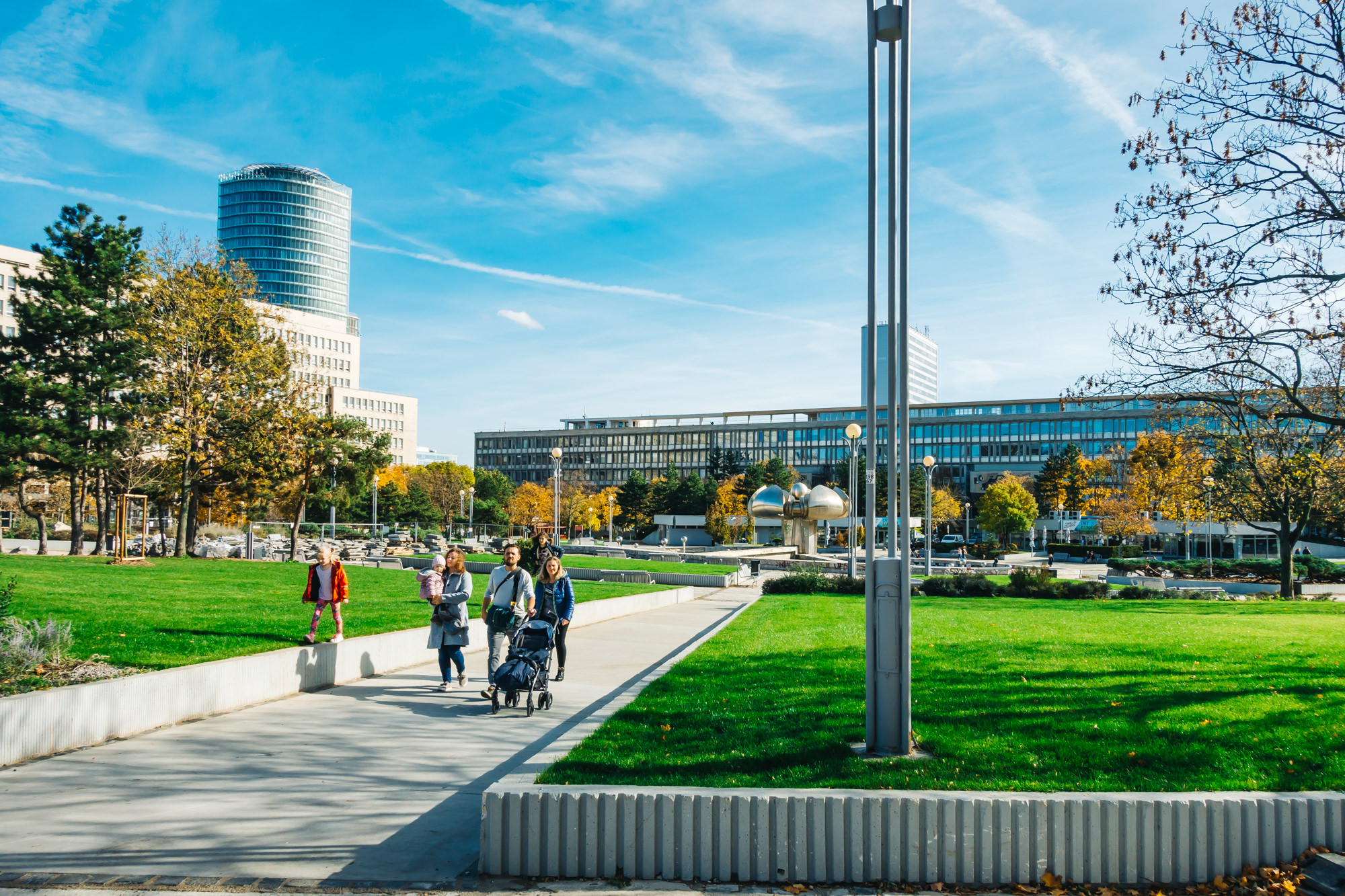 Freedom Square is a monumental square with a large green space and the biggest fountain in Bratislava. The fountain and the architecture around the square evokes the plain, functional style from the communist era. The big fountain in the middle stopped functioning in 2007 and has been deserted ever since.