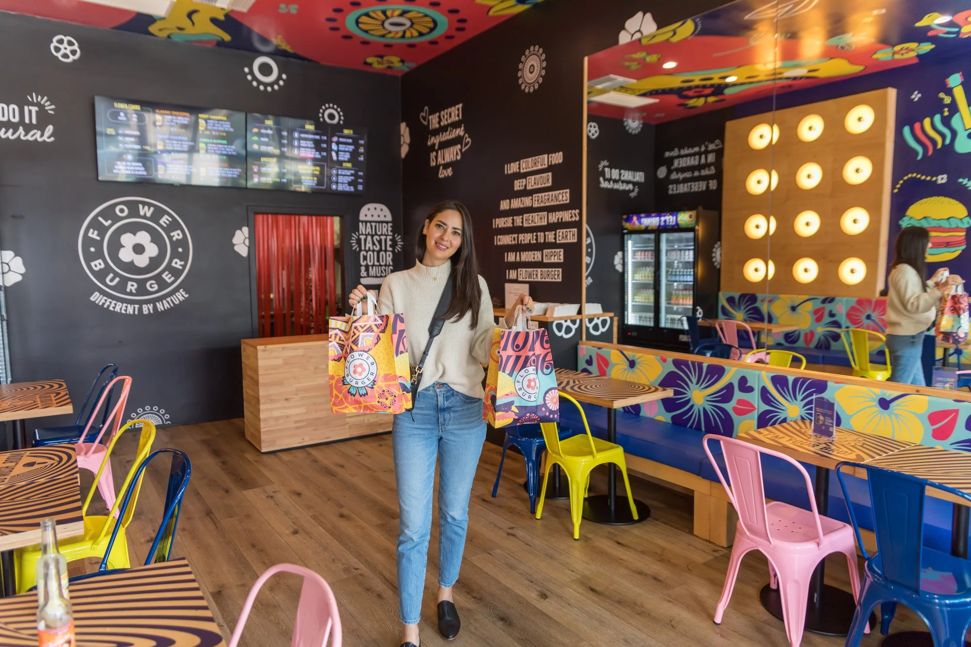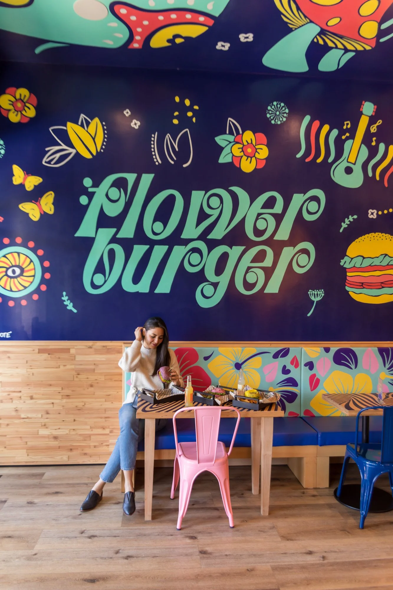 One thing you’ll love about Flower Burger is the colorful decor from ceiling to floor. The entire shop was hand-painted by muralist @kylekyote, so it also makes for a great location to shoot eye-catching photos.