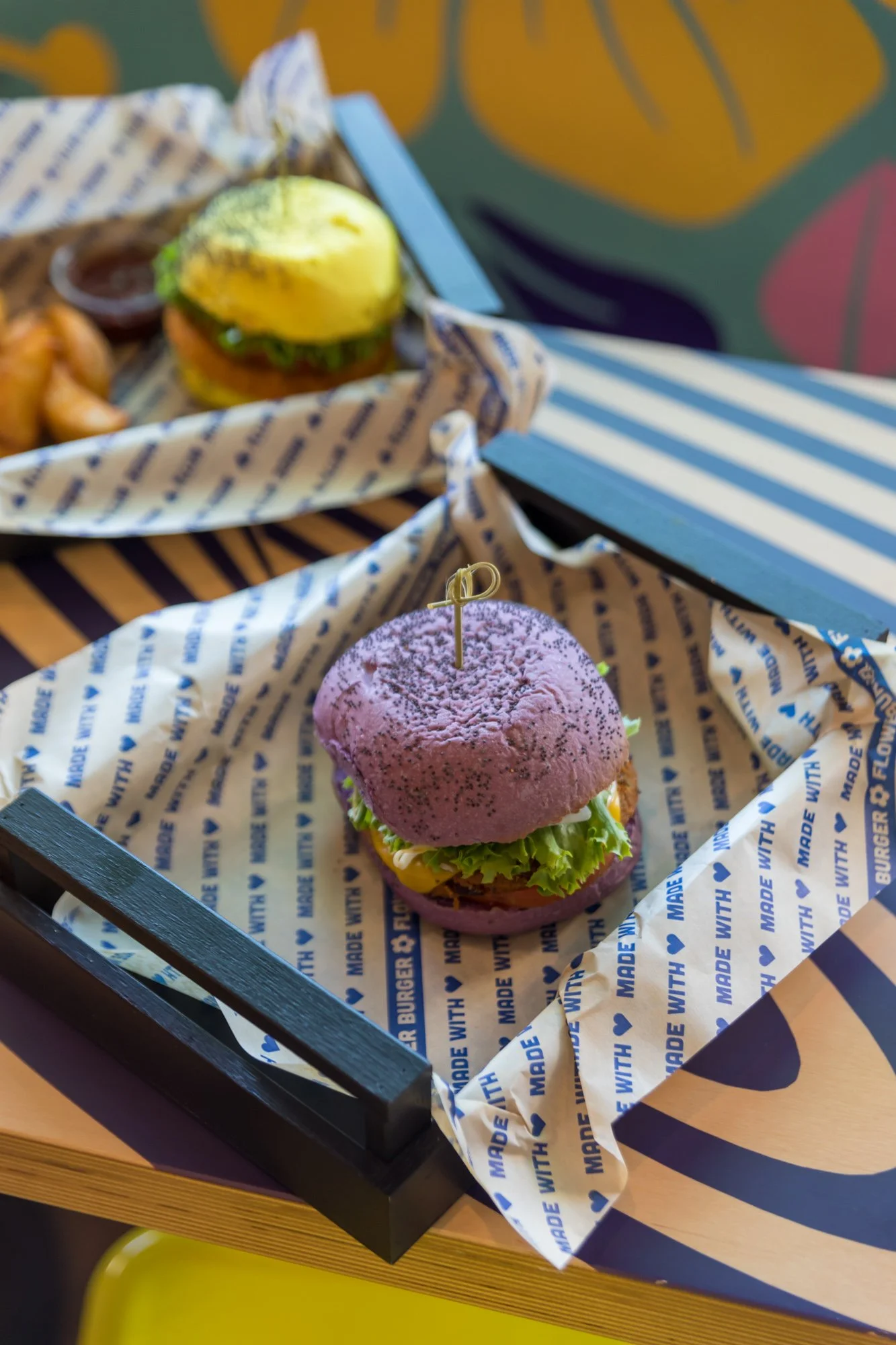 The Flower bun gets its vibrant violet color from purple carrot extract and of course, the Flower cheddar is made without lactose and dairy products. It’s amazing how much the plant-based slice of cheddar tasted like cheddar cheese.