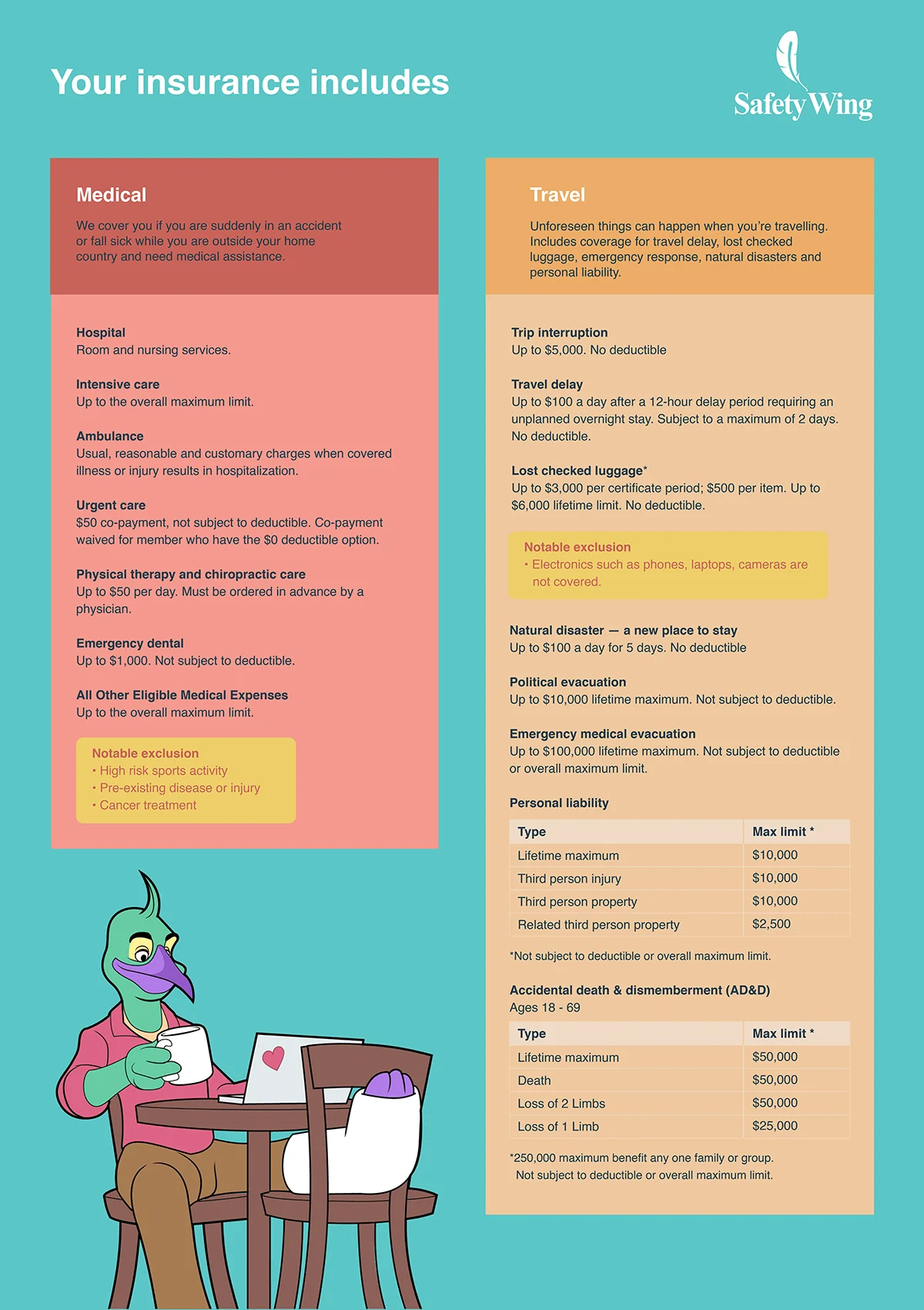 If you are currently traveling or have plans to travel, Safetywing sent out an informative email today regarding their insurance coverage: