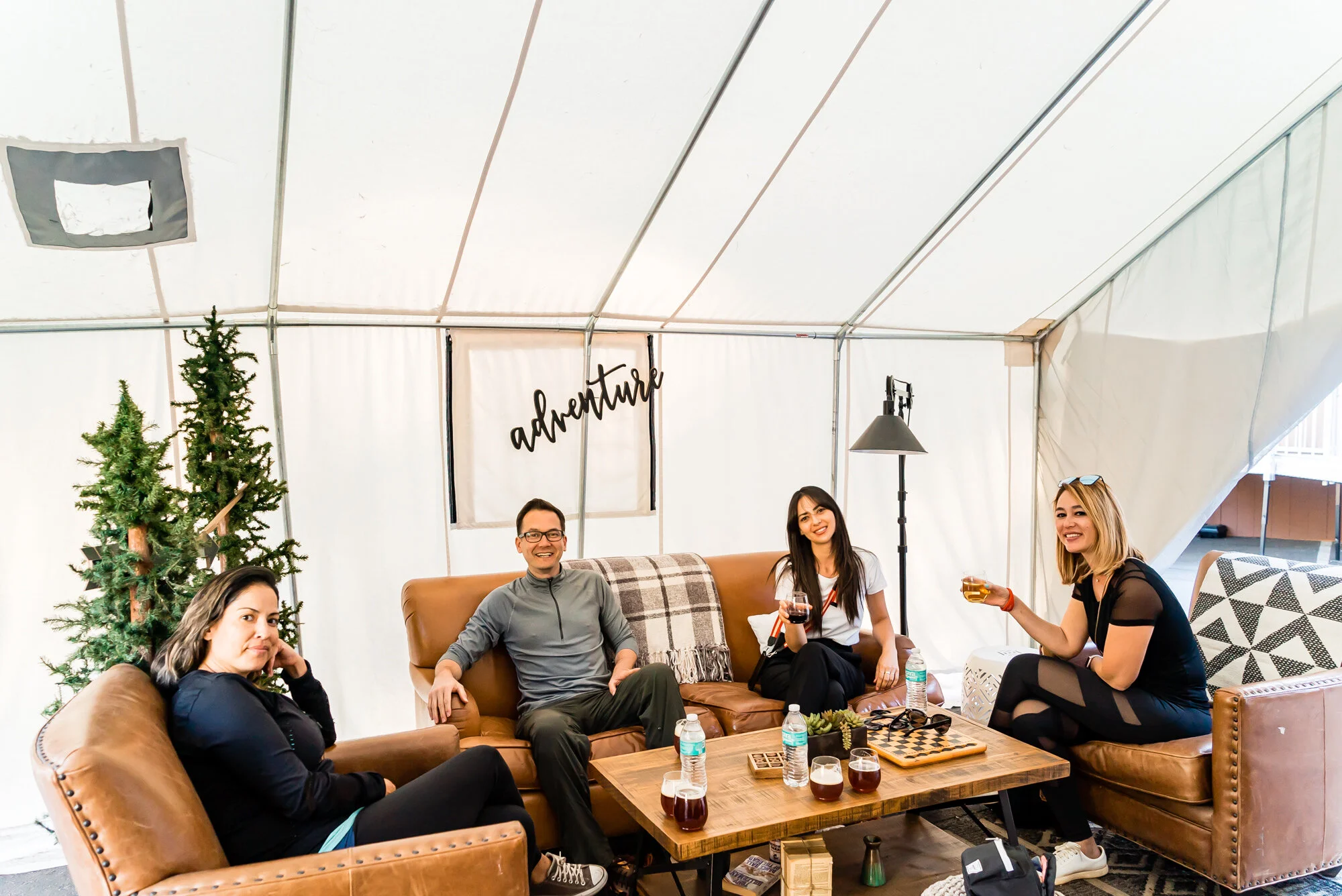 Happy Hour would normally be held in the Club House, but since the Club House was under construction (due to open October 2019) there were temporary tents set up with games with an awesome lounging area. Once the Club House is complete, it will be a beautiful 1,800 square foot lounge that will offer grab-and-go breakfast items in the morning and other refreshments.