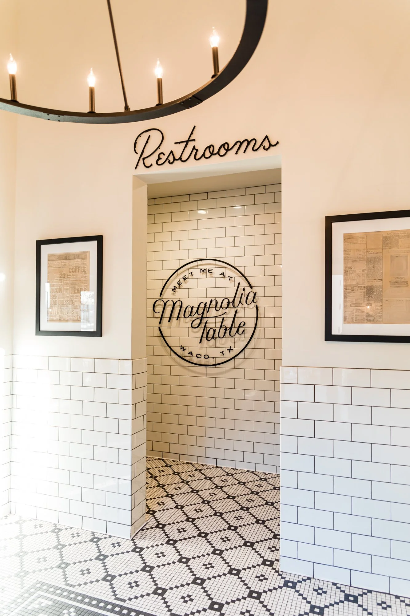 The restaurant’s decor is stunning, as expected, and I loved the tiles they used for the floors. Especially the area near the restroom that had “Waco Texas” spelled out on the floor. The waitress told me that many customers take pictures around the restroom area because of the “Meet Me at Magnolia Table” sign.
