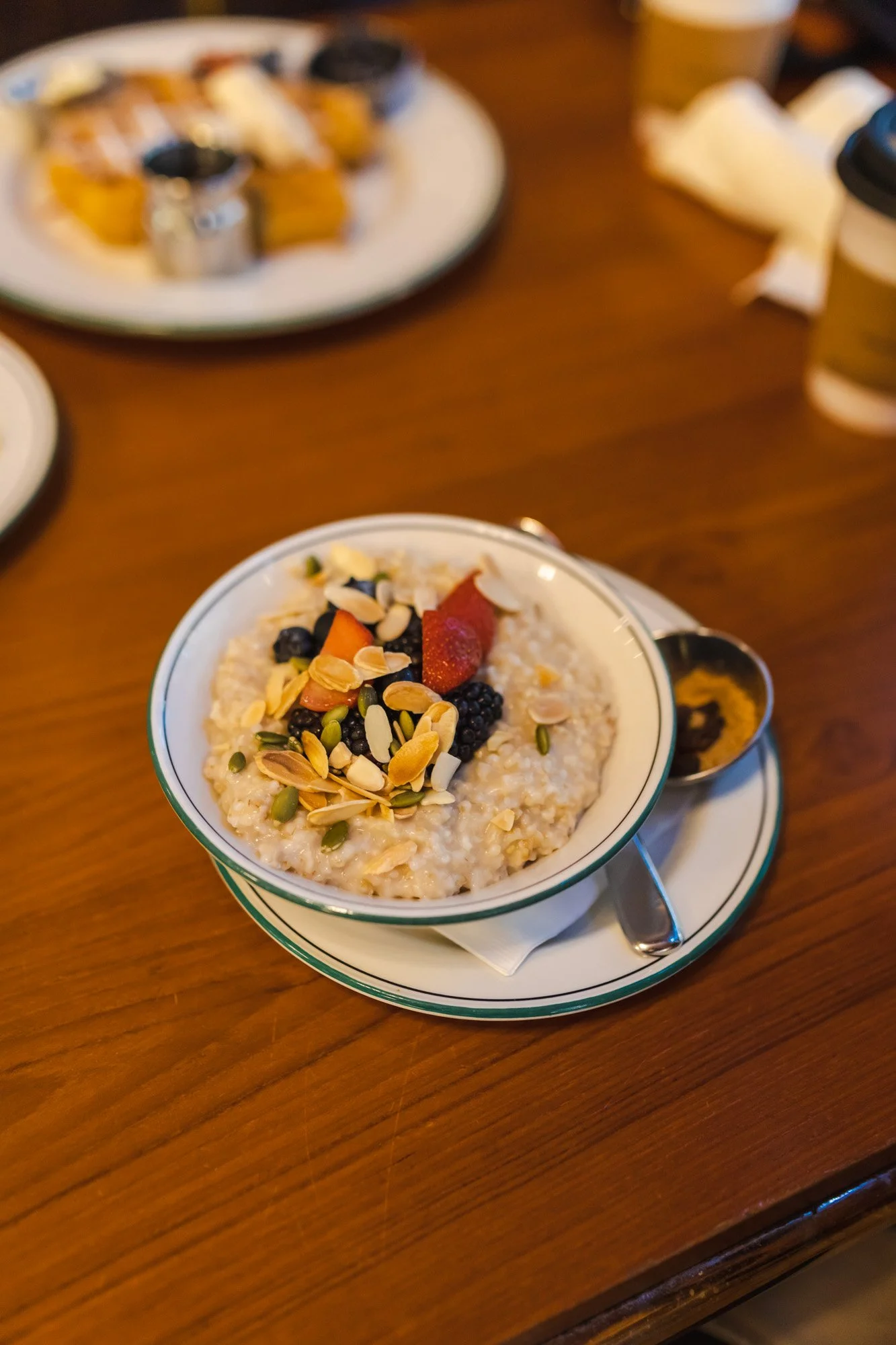 They serve brunch every day and everything is cooked to order. Candy ordered the steel-cut oatmeal which was served with raisins, toasted pepitas, almonds, and fresh berries. Crystal ordered the Texas Shaped Pecan Waffles that also was served with fresh berries.