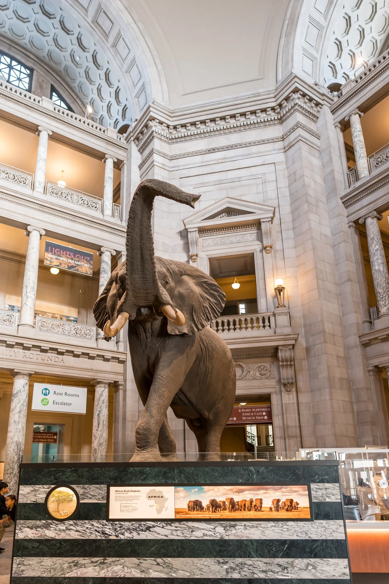 Right when you walk into the museum, you can’t miss the giant elephant statue in the middle of the lobby. Its presence is immediately captivating and commands attention from visitors of all ages. Towering at an impressive 13 feet tall, this iconic sculpture has become synonymous with the Smithsonian Natural History Museum.