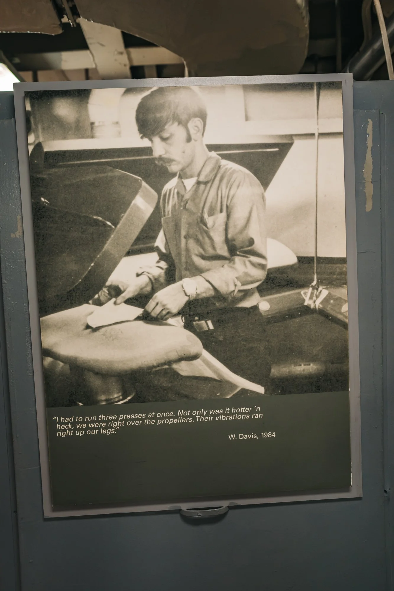 We didn’t think much of the laundry room until we stepped foot in it. The working conditions in here were rough and not pretty. There were various posters showcasing quotes from the hardworking men who toiled in the depths of the underground. They vividly described the intense heat and immense challenges they faced in their daily work below the surface. The ship laundered 43,000 pounds of laundry on a weekly basis.