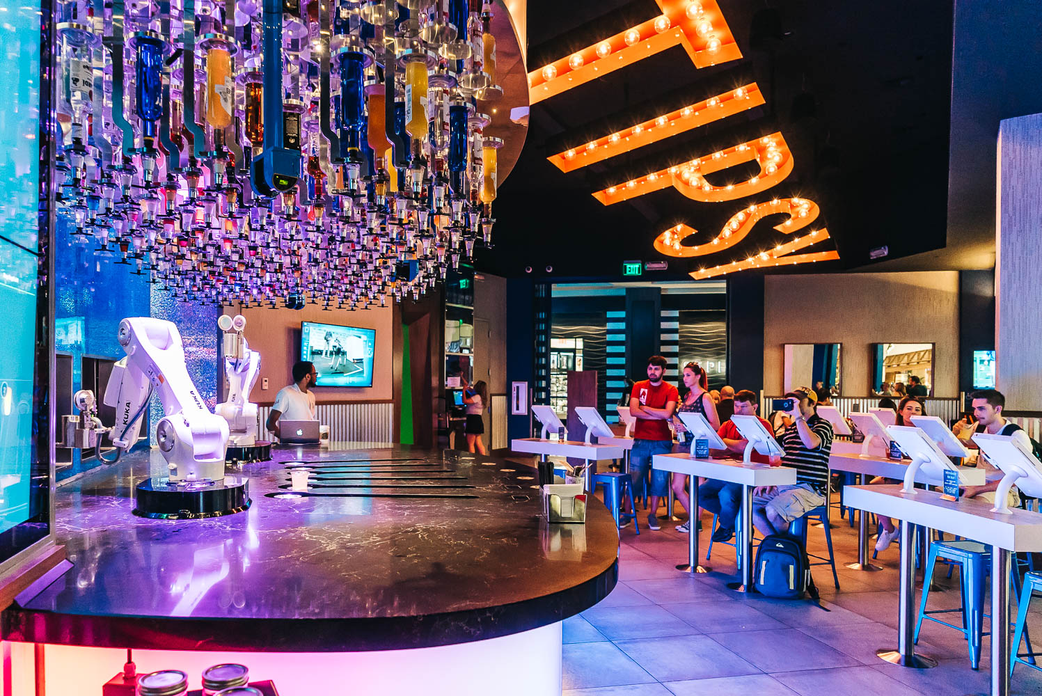 The Cosmopolitan staff were super friendly and even offered to upgrade us (free of charge) to a room with an amazing view of the Vegas strip. Thank you for the upgrade!!! There is always something to see and do in Vegas and we decided to skip the day gambling and walked around the city. We came across this really cool bar called Tipsy Robot where your drinks are made by a robot. The whole experience gives you a futuristic vibe from start to finish. The drinks are a little overpriced, so we only ordered one drink for fun.
