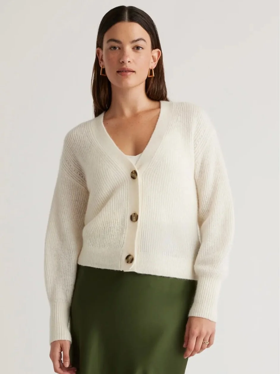 To complete my outfit, I reached for my favorite cardigan from Quince, which has secured its place as a staple piece in my wardrobe. This beautiful baby alpaca-wool cardigan has a flattering cropped length and is extremely lightweight, making it so easy to toss into my tote bag whenever I'm not wearing it. I also decided to wear my favorite Mary Janes again.