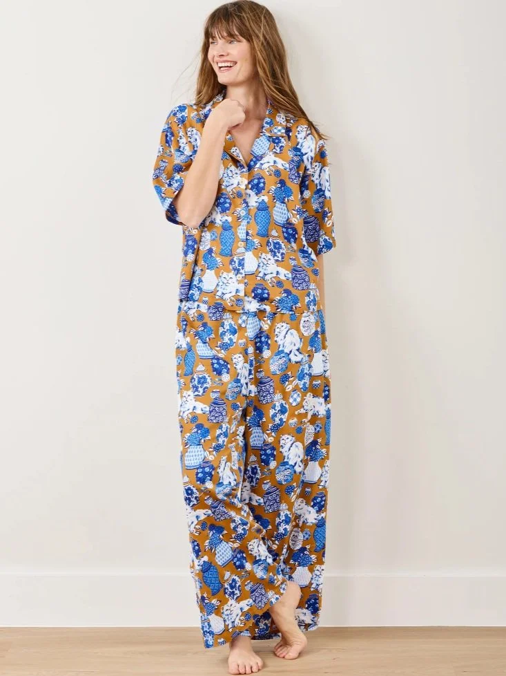 I was drawn to these pajamas not only for the unique and playful print, but I also loved the designs cropped top and high-rise pants with pockets. The pajama set and matching robe are crafted from a breathable Eco Satin material, which felt incredibly soft and had such a lovely touch against the skin, making it perfect for a relaxing night in after a long day of sightseeing.
